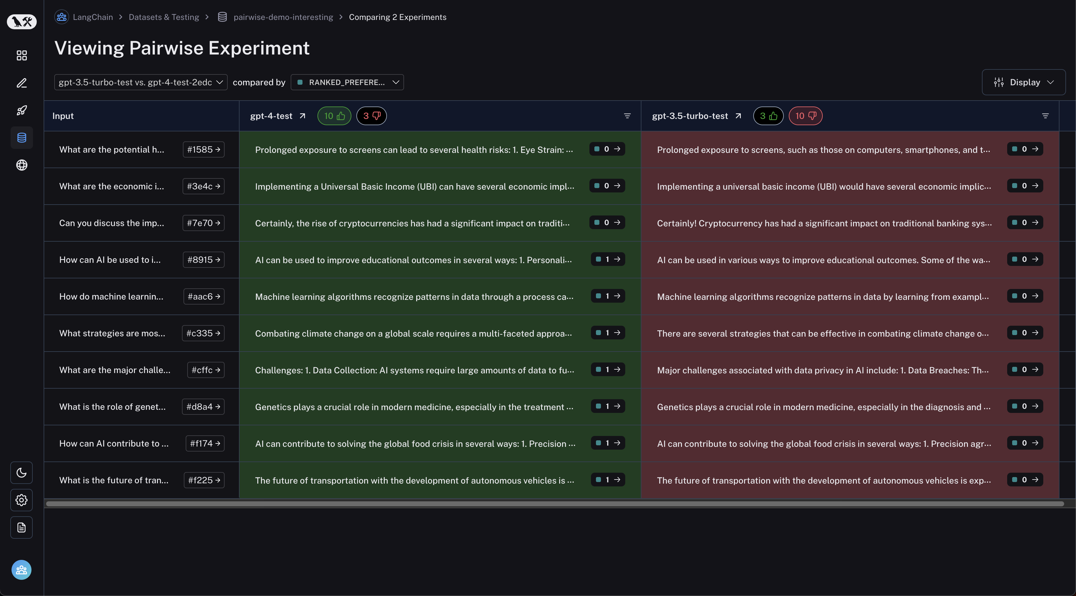 Click on a pairwise experiment that you would like to inspect, and you will be brought to the Comparison View:
